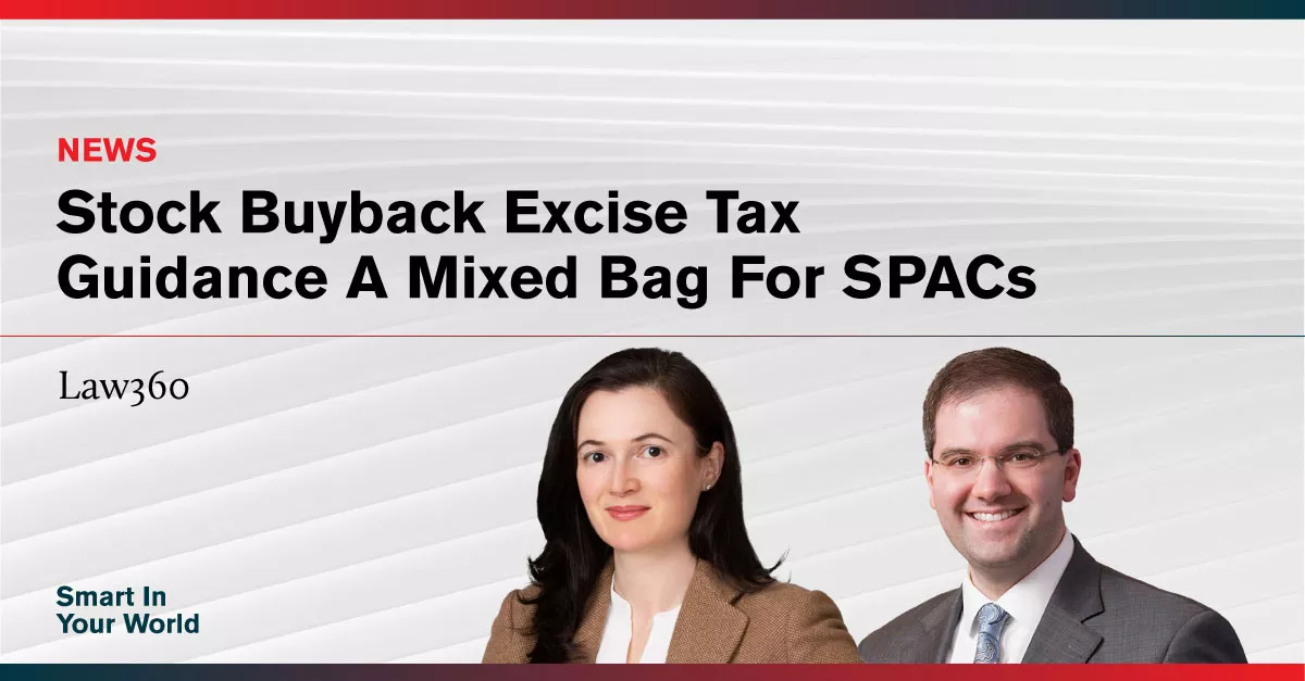Since its enactment, the excise tax has been viewed as a significant development for all publicly traded corporations, but in particular, it has become a matter of significant concern for publicly traded special purpose acquisition companies, or SPACs.