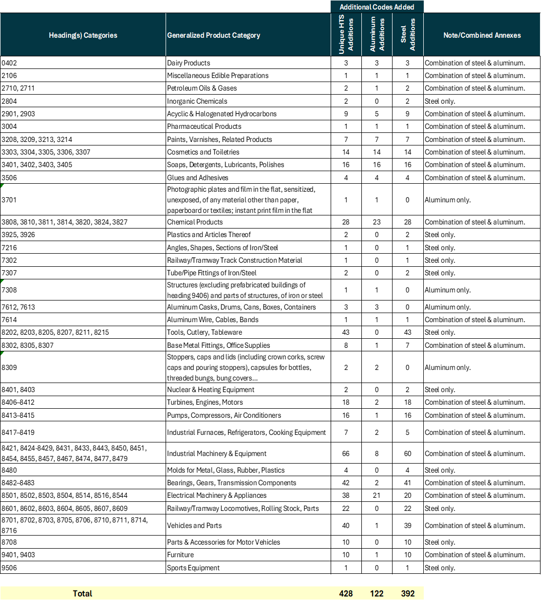 US Commerce Adds 428 HTS Codes to Section 232 Steel and Aluminum Tariff List