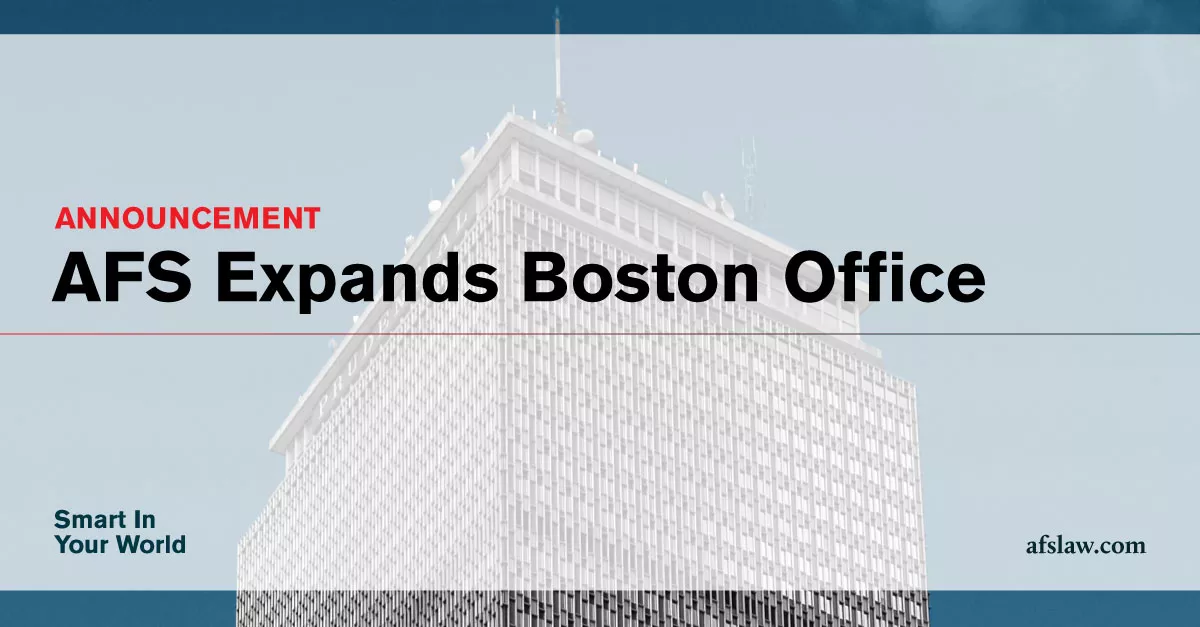 ArentFox Schiff is pleased to announce the addition of 17 attorneys and specialists, including eight partners and three counsel, to its Boston office, expanding the firm’s nationally recognized Technology, Life Sciences, Intellectual Property, and Complex Litigation services.