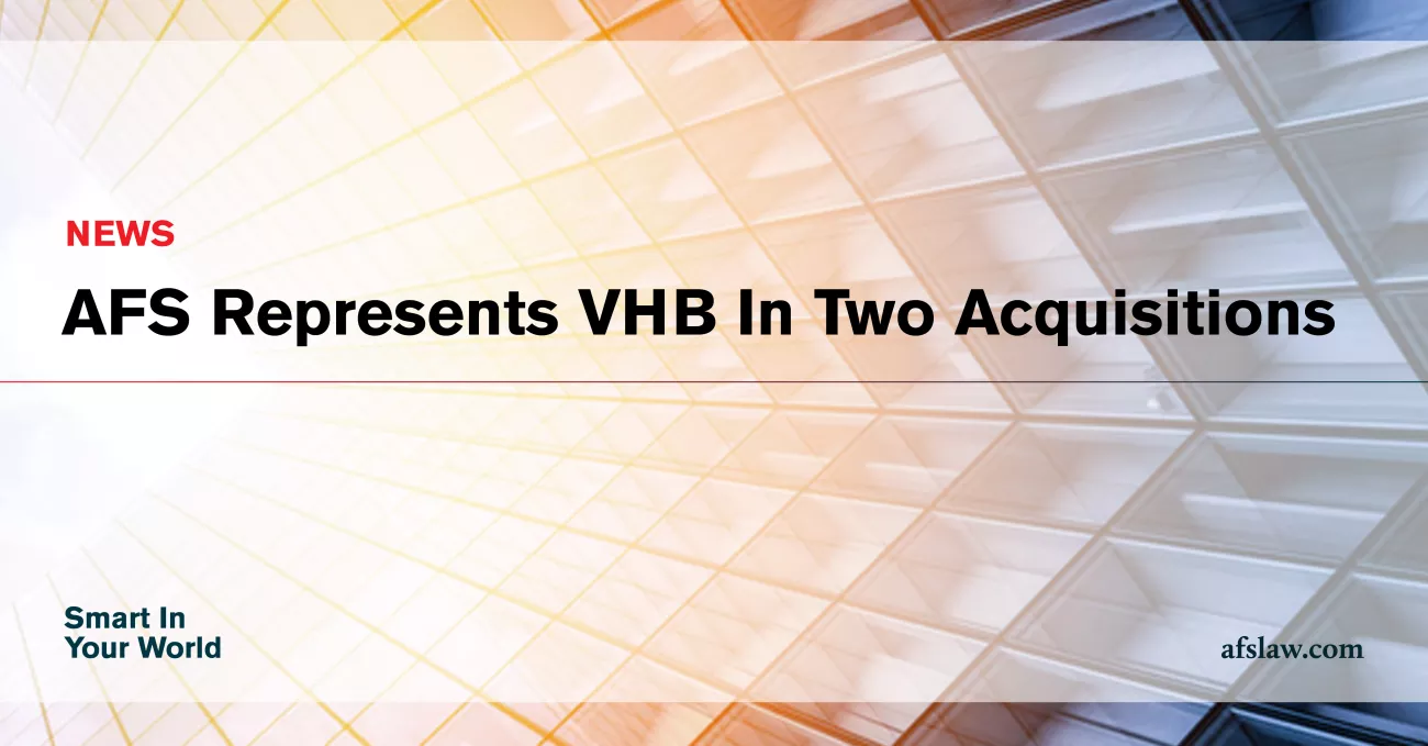 ArentFox Schiff represented VHB, a national civil engineering firm, in two acquisitions, expanding VHB’s client service capabilities along the East Coast.