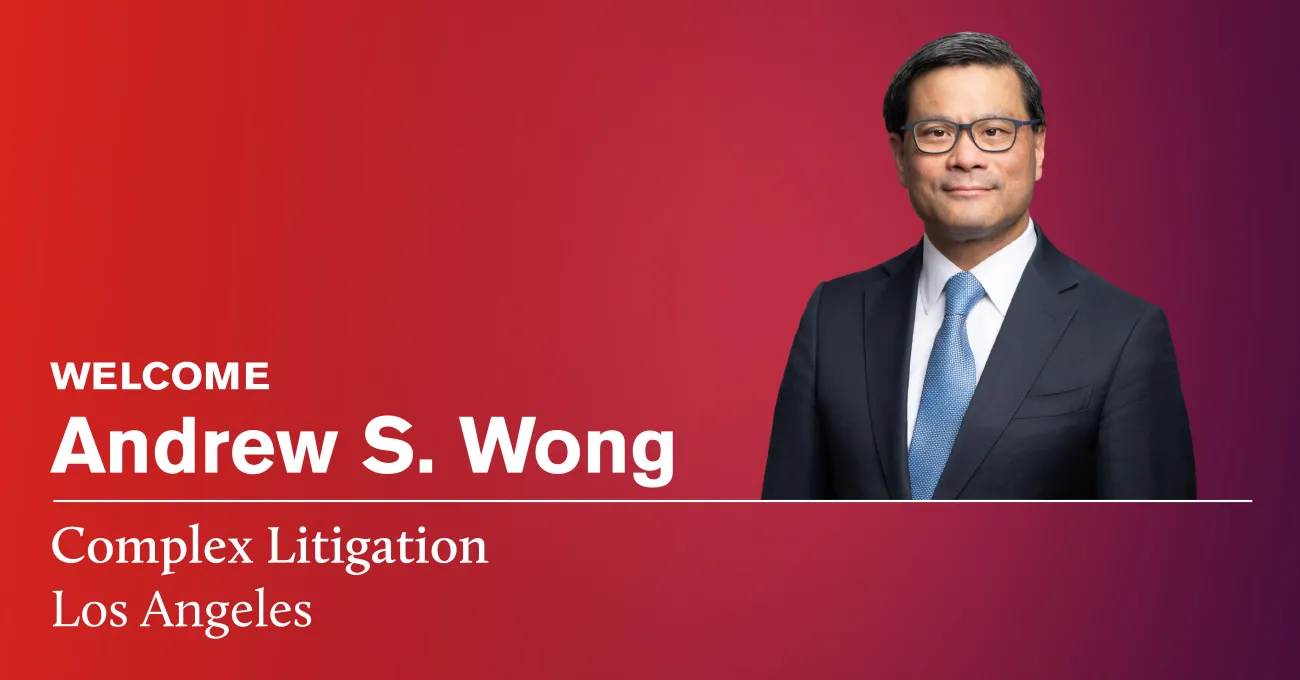 ArentFox Schiff is pleased to announce the addition of Partner Andrew S. Wong to its Complex Litigation practice in the firm’s Los Angeles office. Andrew has more than two decades of experience handling complex litigation cases ranging from commercial to employment matters, with a significant presence in Asia. His addition strengthens the firm’s ability to manage litigation in multiple jurisdictions.