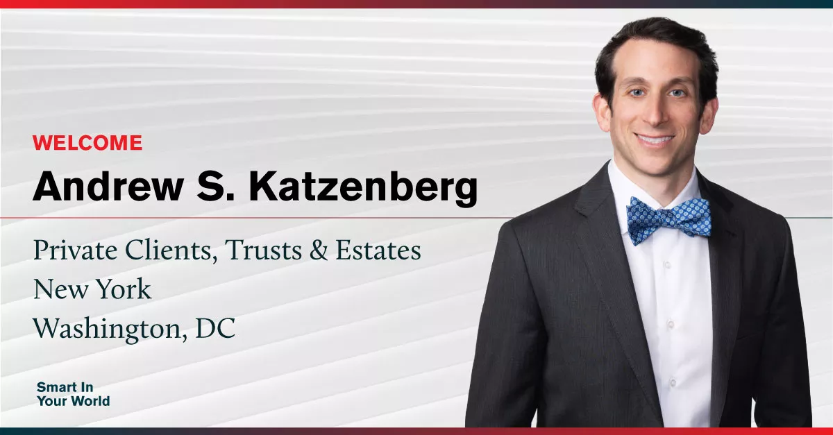 ArentFox Schiff is pleased to announce the addition of Partner Andrew S. Katzenberg to the firm’s Private Clients, Trusts & Estates practice. Based in both the New York and Washington, DC, offices, Andy brings extensive experience counseling high-net-worth individuals and families on estate and tax planning matters.