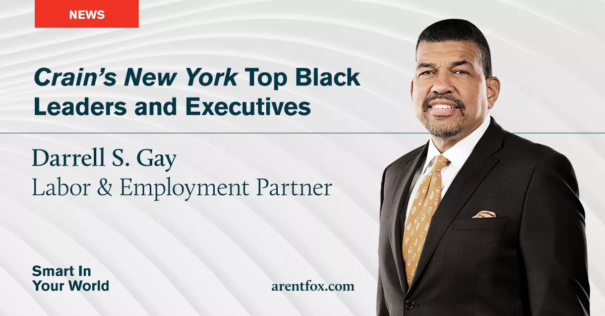 Arent Fox is proud to announce that Labor & Employment Partner Darrell S. Gay has been named among the most notable Black Leaders and Executives by Crain’s New York.