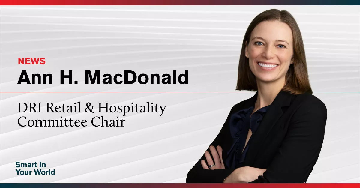 ArentFox Schiff is pleased to announce that Hospitality Practice Group Leader Ann MacDonald has been appointed chair of DRI’s Retail & Hospitality Committee.