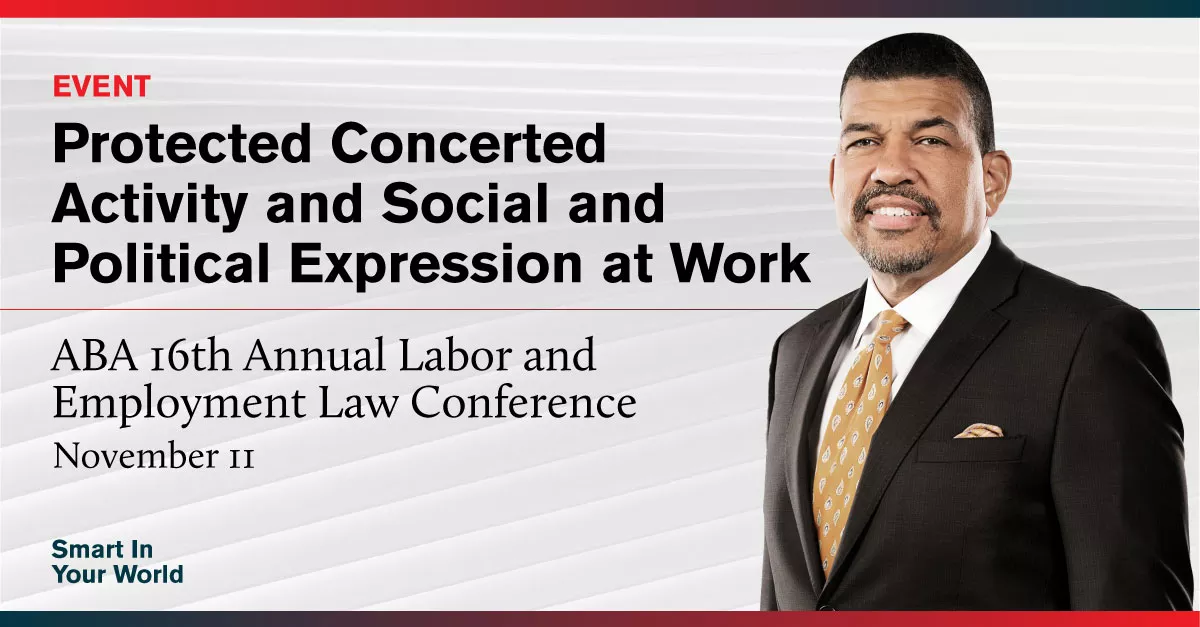 ArentFox Schiff partner Darrell Gay will be speaking on the “Protected Concerted Activity and Social and Political Expression at Work” panel at the American Bar Association’s (ABA) 16th Annual Labor and Employment Law Conference in Washington, DC on November 11, 2022.