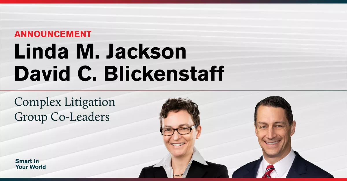 ArentFox Schiff is pleased to announce that Partners Linda M. Jackson and David C. Blickenstaff will lead the firm’s Complex Litigation practice group.